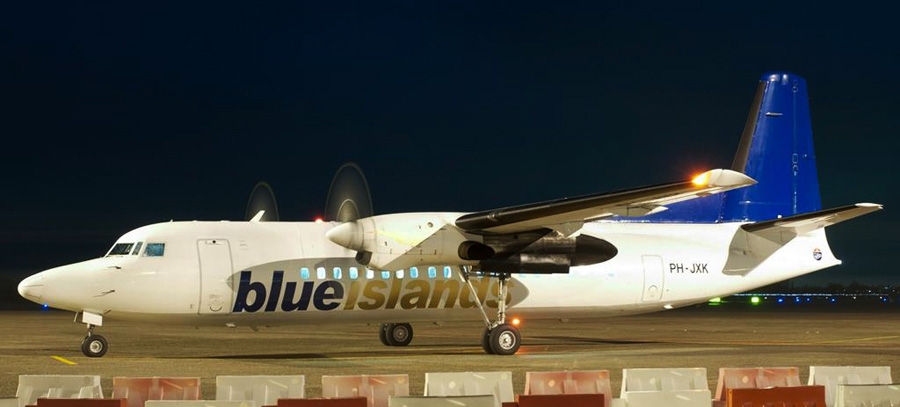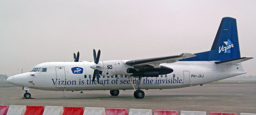 Vizion Air kleuren gestoken Fokker 50 PH-JXJ van Denim Air. (Joshua