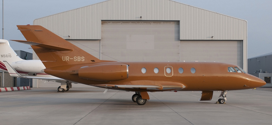 Op 8 maart kwam de in 1968 gebouwde Dassault Falcon 20D-5 UR-SBS van