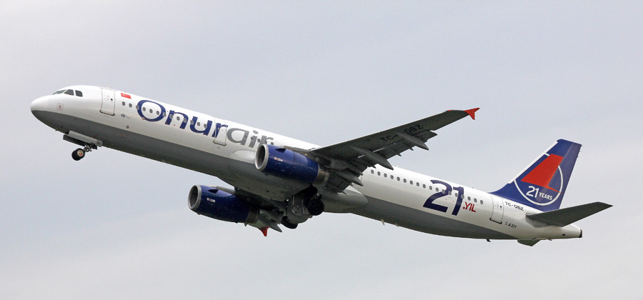 Airbus A321-131 TC-OBZ van Onur Air bracht op 9 augustus zijn eerste