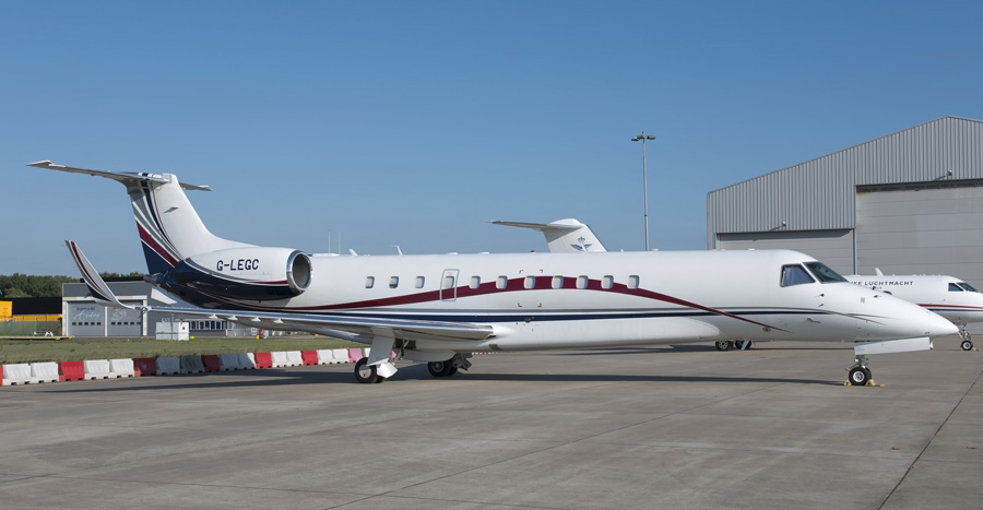 De fraaie Embraer EMB-135BJ Legacy 650 G-SUGR staat op de AOC van Air
