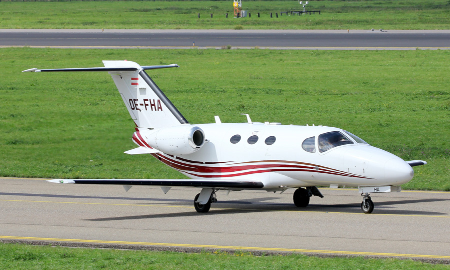 Tweemaal een Cessna 510 Citation Mustang van Globe Air: de OE-FHA nog in