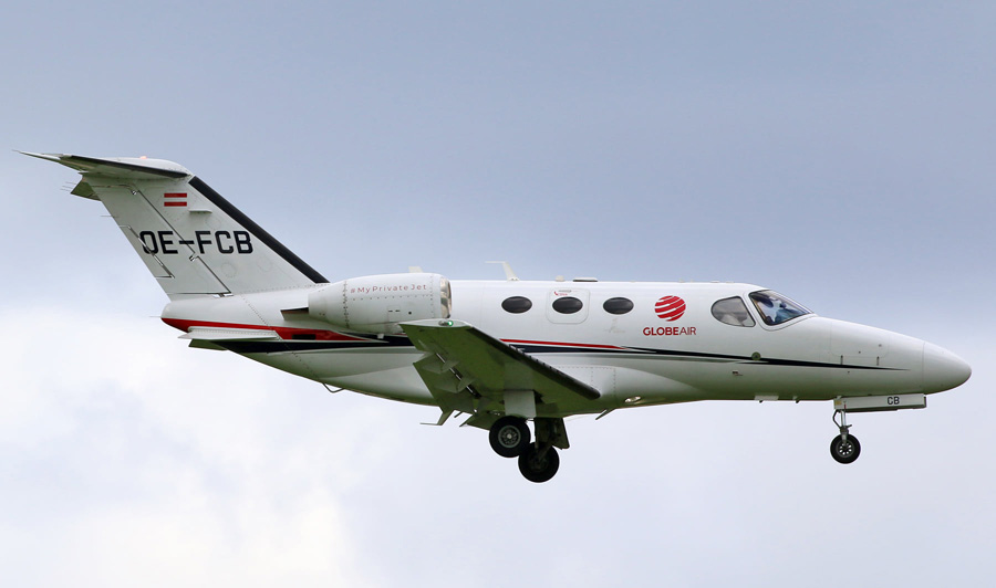 Citation Mustang OE-FCB van GlobeAir. (Kees Harteveld, 31 augustus