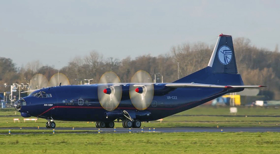 Antonov 12BP UR-CZZ van Ukraine Air Alliance. De vracht bestond uit 15
