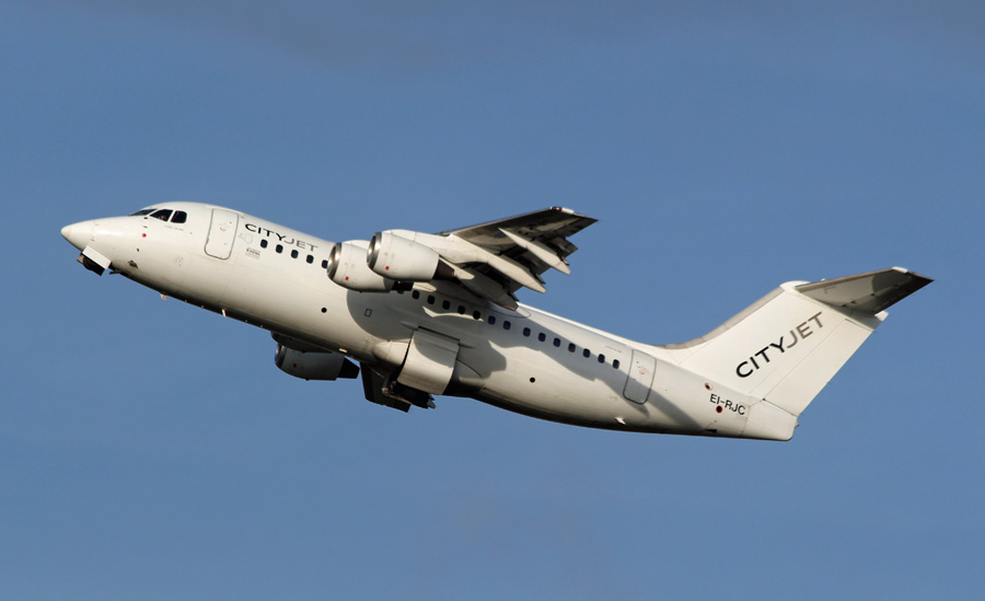 Nog steeds in de witte uitmonstering: British Aerospace RJ85 EI-RJC