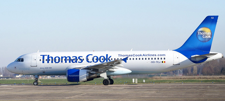 op de Deltalijn om de vertrekkende Airbus A320-214 G-SUEW van Thomas