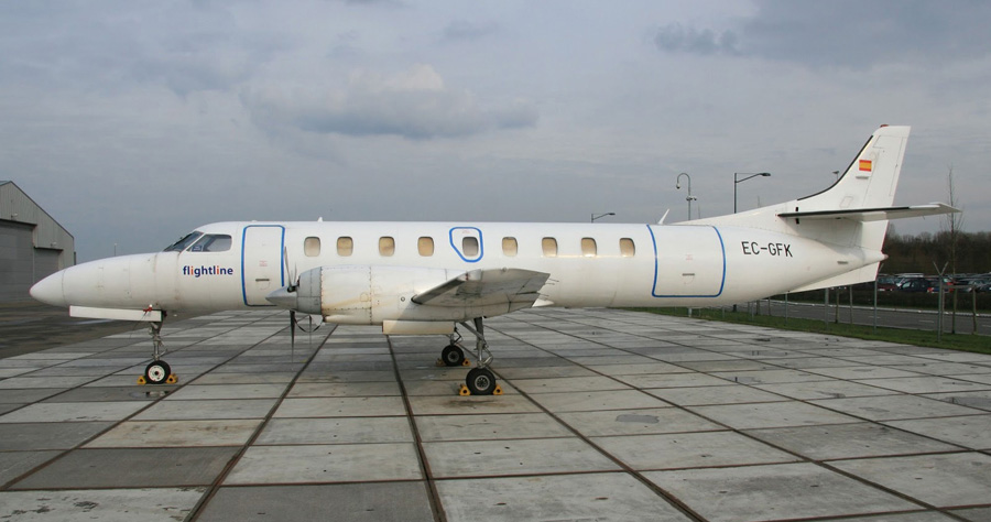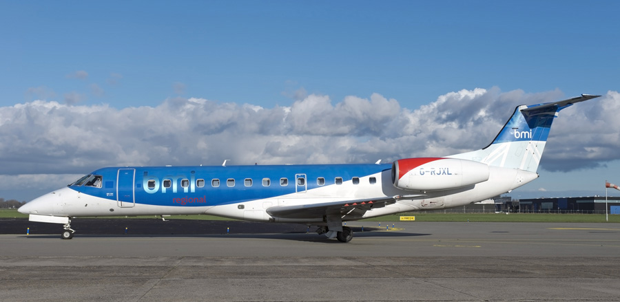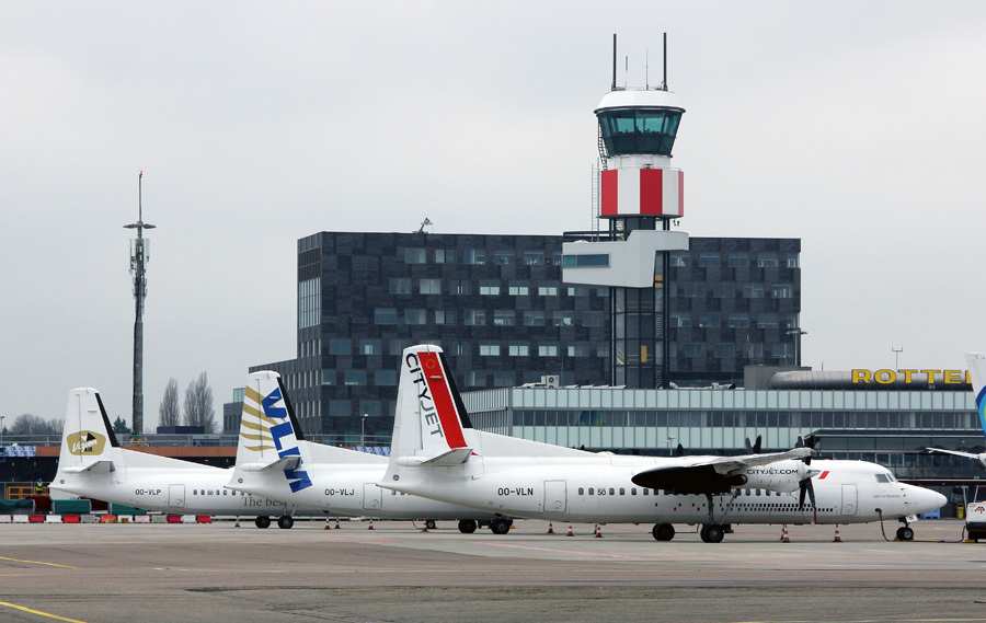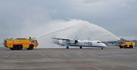 eerste vlucht van Flybe tussen Manchester en Rotterdam, werd