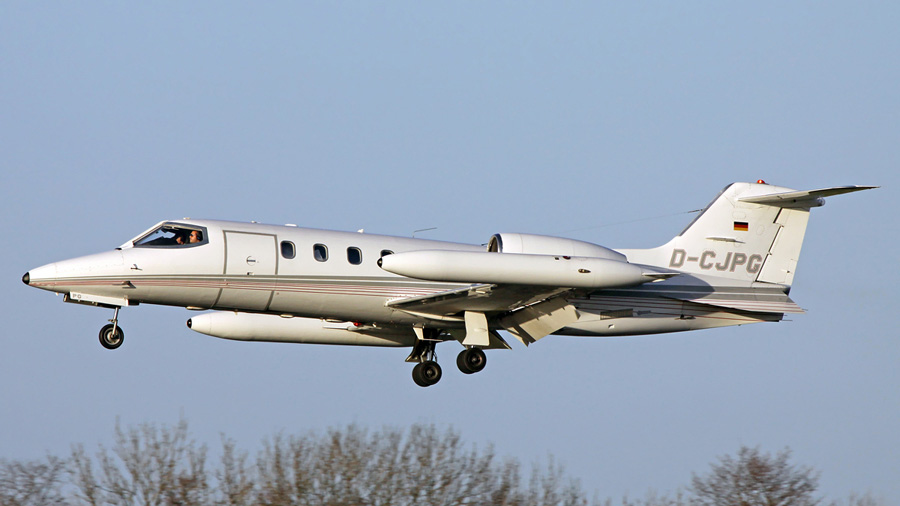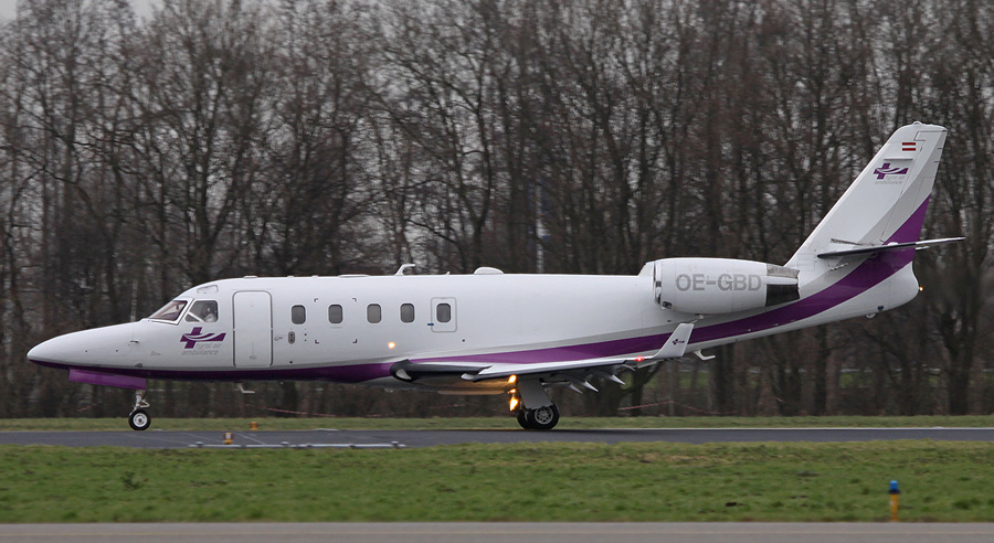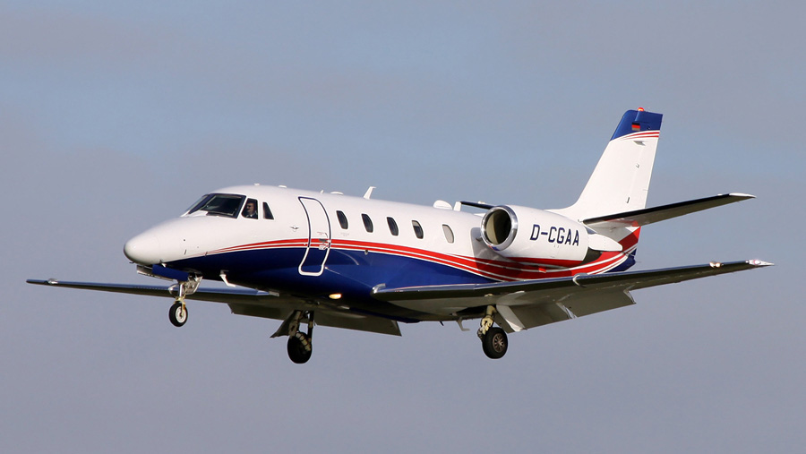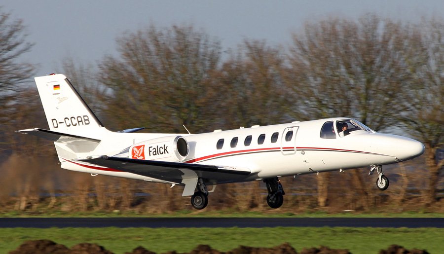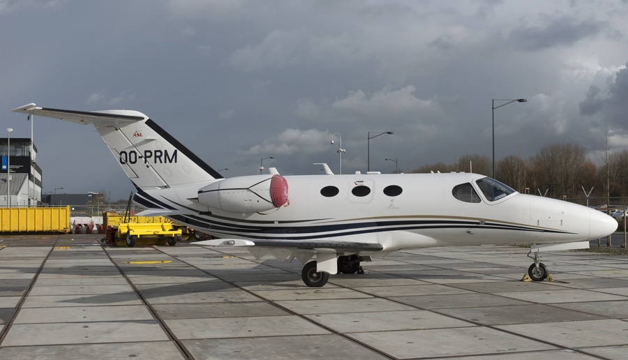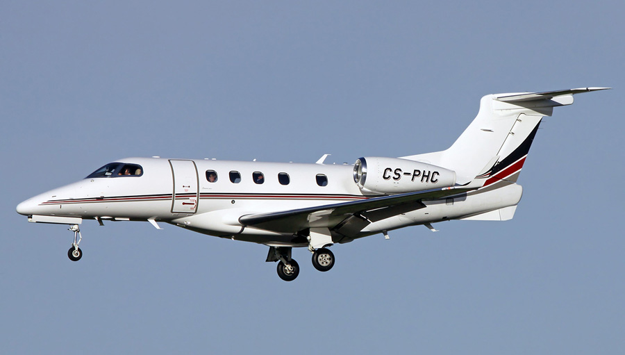 de landende Embraer EMB-505 Phenom 300 CS-PHC van NetJets Europe. (Andr�