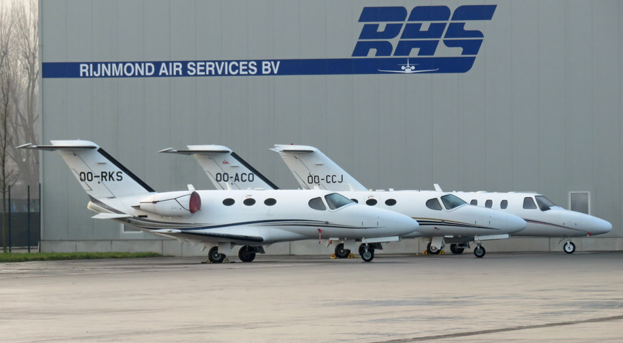 Citation Mustangs OO-RKS en OO-ACO en de Cessna 525 CitationJet 1+