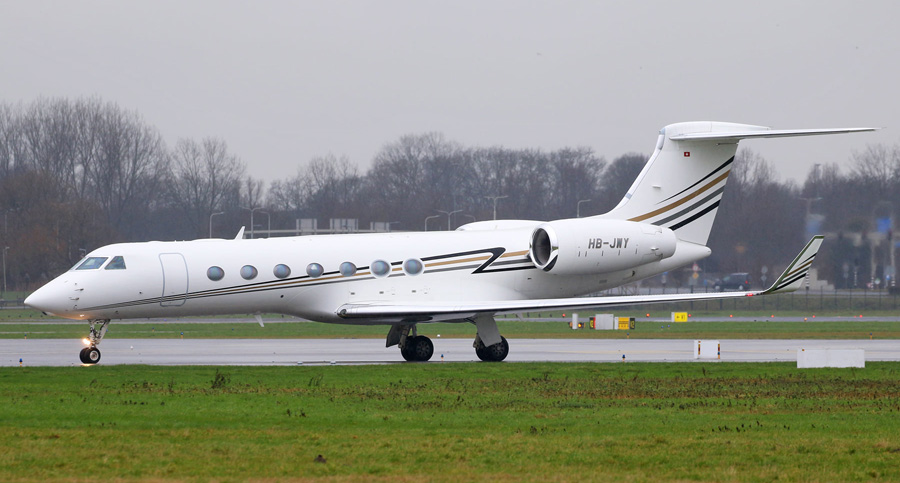 Weer een inklaringsklant?: Gulfstream G550 HB-JWY van Premium Jet. (Kees