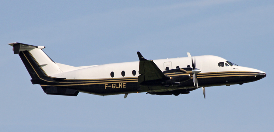De Beech 1900D F-GLNE van Twinjet kwam met slecht twee passagiers binnen