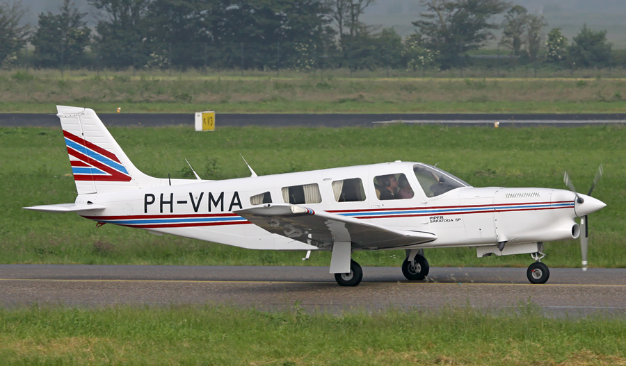 Saratoga SP PH-VMA, die we hier uit zien taxi�n naar baan 24 voor zijn