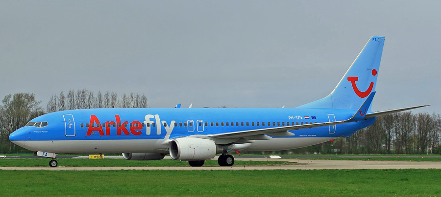 De eerste vlucht van nieuwkomer Arkefly op de zomercharters naar