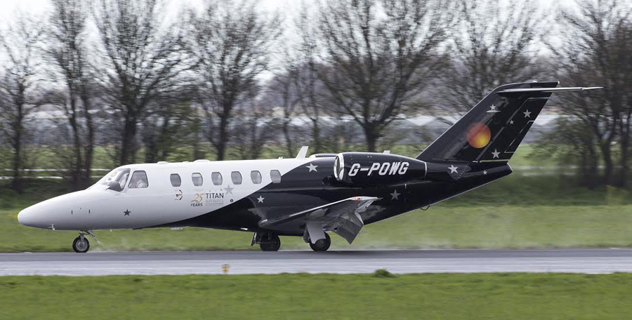 Citation Exel OH-RBX van River Aviation een tankstop op Rotterdam. Twee