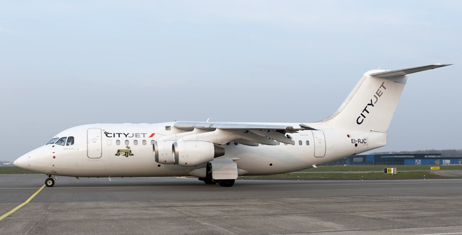 De praktisch geheel witte BAe RJ85 EI-RJC van CityJet bleek bij
