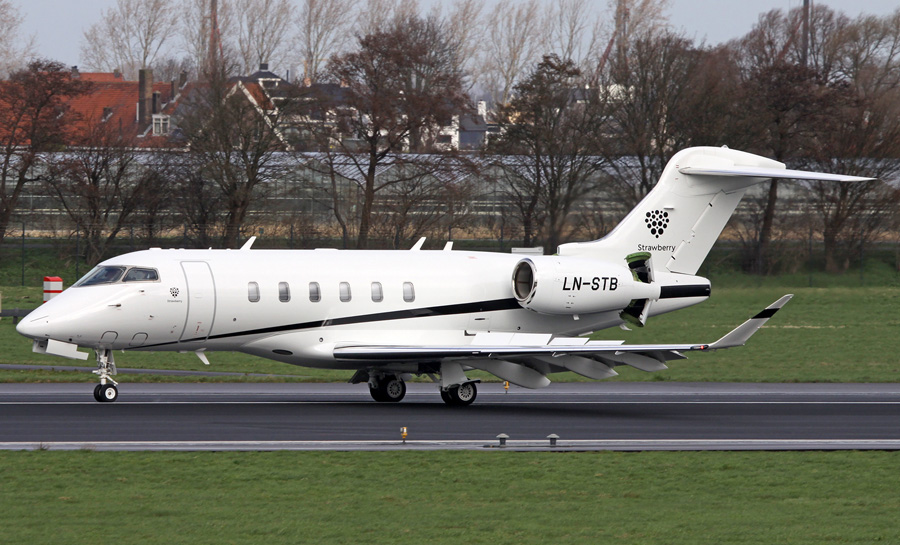 De naam Strawberry op de Bombardier BD-100-1A10 Challenger 300 LN-STB