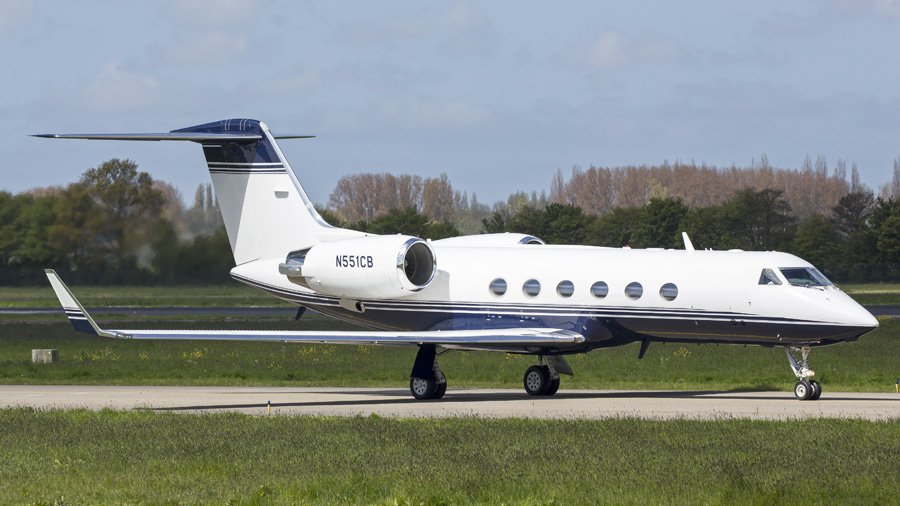 met een foto van de Gulfstream IV N551CB van AVN Air LLC die, na