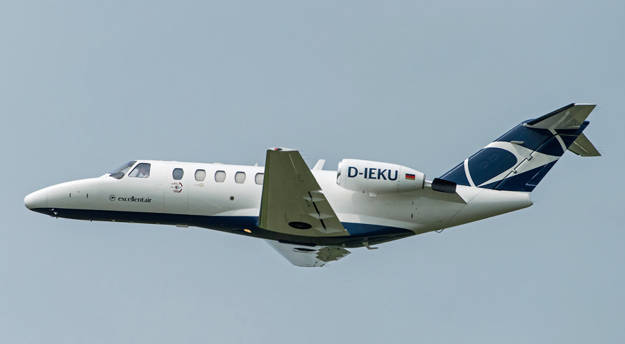 De beschildering op de staart van de Cessna 525A CitationJet 2 D-IEKU van