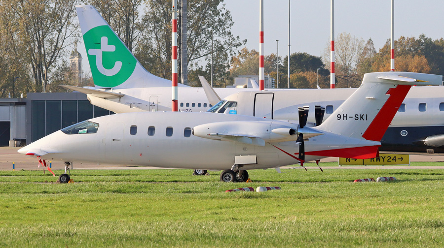 Piaggio P.180 Avanti II 9H-SKI van Luxwing. (Henk Wadman, 3november