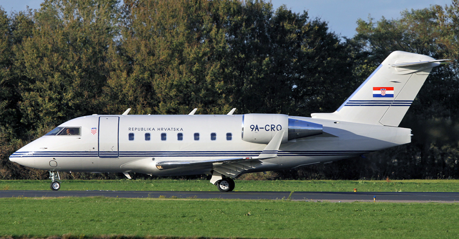 gelande Canadair CL-600-2B16 Challenger 604 9A-CRO van de Republika