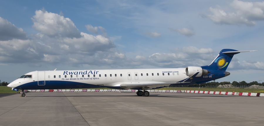 arriveerde deze Canadair CL-600-2D24 CRJ-900 9XR-WI van RwandAir vanuit