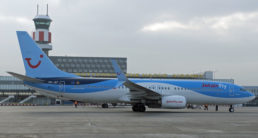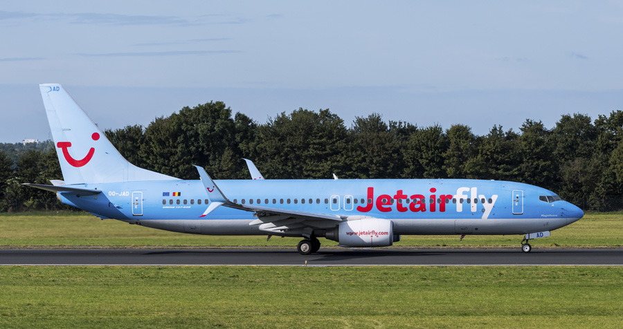 door de Boeing 737-8K5 OO-JEF. Voor zover bekend zien we Jetairfly