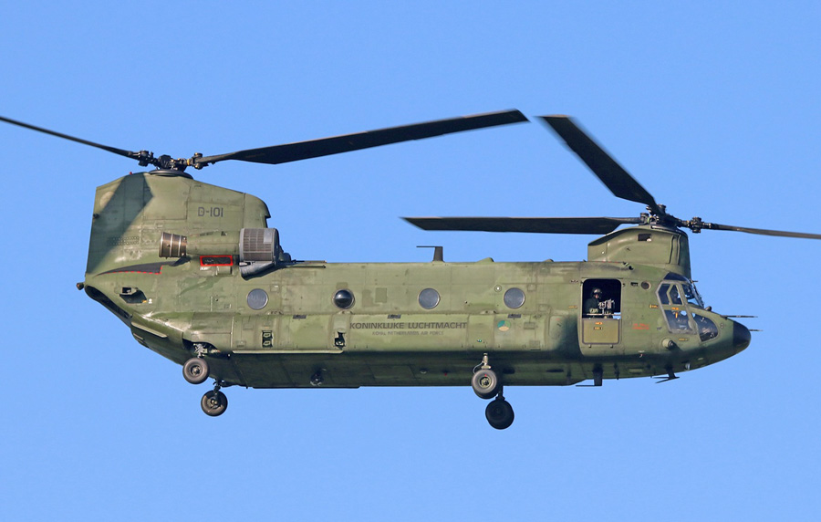CH-47D Chinook D-101 van het DHC zette enkele passagiers af bij het