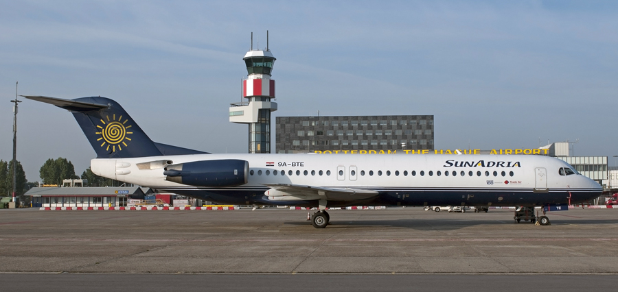Radio 538 bracht de Trade Air Fokker 100 9A-BTE naar Rotterdam om de
