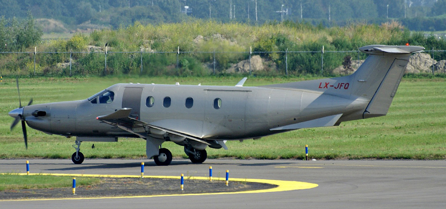 Helaas weinig kleur op de Pilatus PC-12/47E LX-JFQ van Jetfly. (Rob