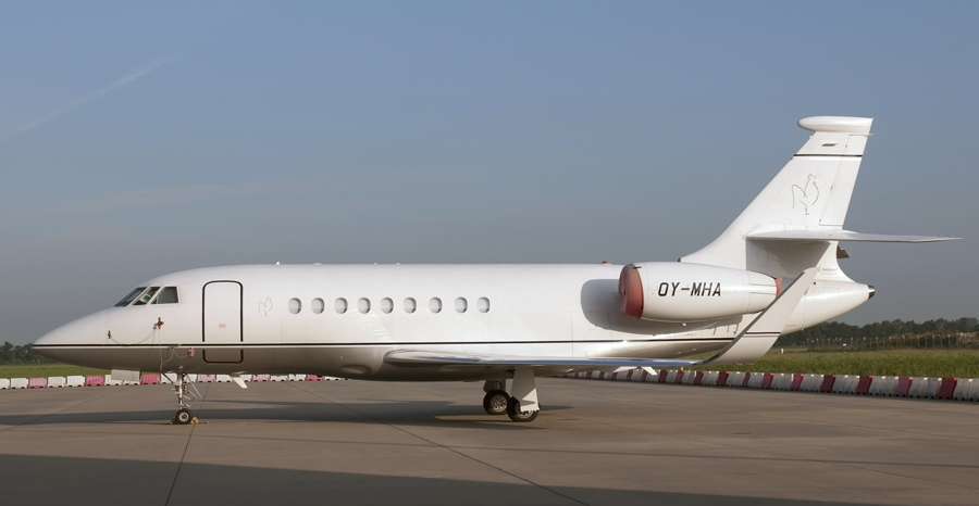 voor Rooster Aircraft AG met de Dassault Falcon 2000EX OY-MHA.