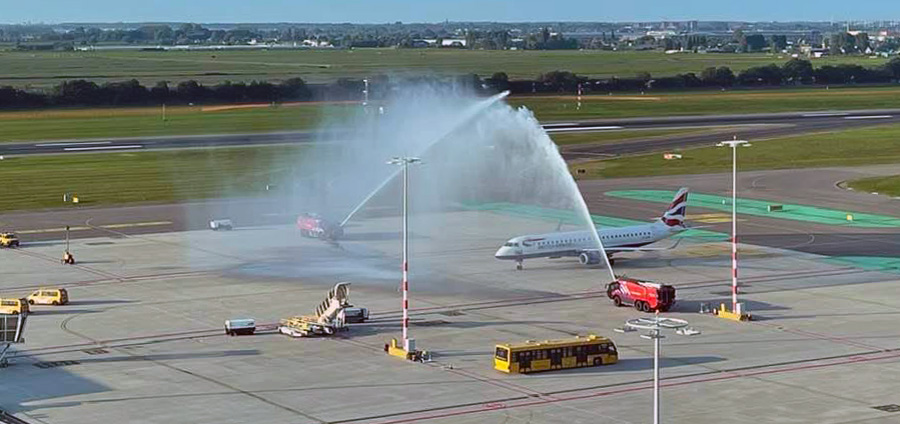 G-LCYN een watersaluut van de brandweer en