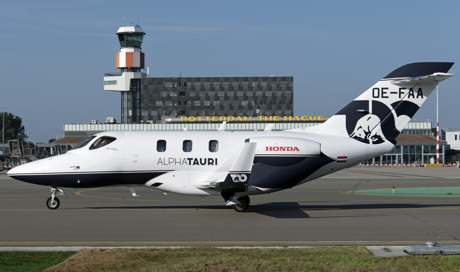 Honda HA-420 HondaJet OE-FAA vliegt voor Alpha Tauri, het B-team van Red
