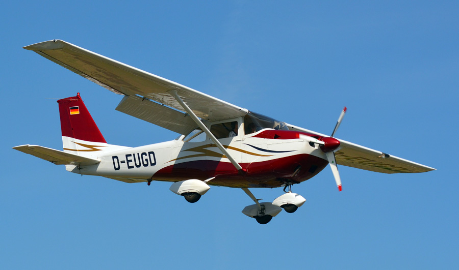 De uit 1966 stammende Cessna 172H Skyhawk (diesel) D-EUGD was tot 1992