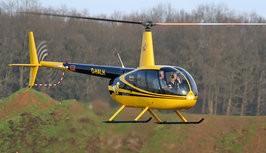 Helicon is de gebruiker van deze Robinson R44 Raven II OO-FLY. (Ren� Schrijver, Teuge, 27 maart 2010)