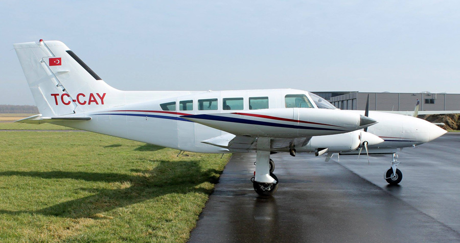Cessna 402B II TC-CAY in het nieuwe kleurenschema. (Ivo de